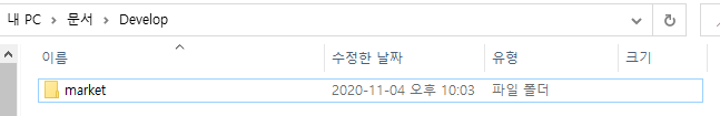 실제로 내문서 안에 Develop 폴더와 그 안에 market 폴더가 생성된 것을 확인할 수 있다.