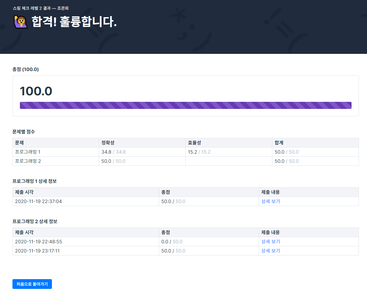 학교에서든 회사에서든 문제 해결을 위한 노력이 밑바탕이 되어 차근차근 하루에 1~2 문제씩 풀어나가니 실력이 좋아지는 것을 체감할 수 있었습니다.